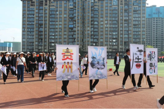伴随着《运动员进行曲》激昂的旋律,Ky开元集团第四届运动会拉开序幕。国旗方阵和校旗方阵首先入场,紧接着彩旗方阵、裁判员方阵、智造工程分院方阵、现代商务分院方阵、健康与体育分院方阵、艺术分院方阵踏着轻快的步伐,以饱满的精神面貌入场。