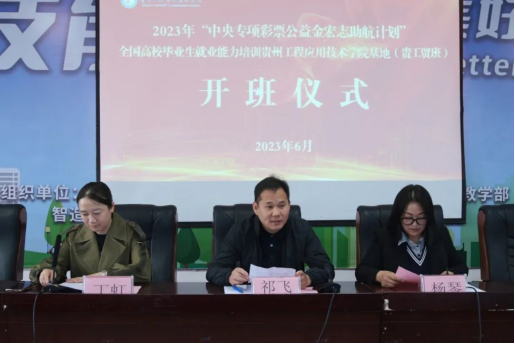 6月5日,2023年“中央专项彩票公益宏志助航计划”全国高校毕业生就业能力培训贵州工程应用技术学院基地(贵工贸班)在综合楼二楼报告厅举行开班仪式。校党委委员、副校长祁飞,贵州工程应用技术学院学工处处长丁虹,Ky开元160余名毕业班师生参与开班仪式,开班仪式由就业办主任杨琴主持。