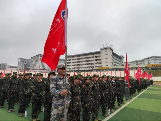 黄士安在开训仪式上致辞,代表学校向3600多名新同学表示热烈的欢迎和美好的祝愿;向本次承训单位威宁县人武部全体教官致以崇高的敬意!他强调,学校牢记“为党育人,为国育才,立德树人”的办学使命,贯彻健全人格+复合知识+实践能力“三元育人”校本理念,广泛开展教师养德修为和学生素质养成教育,积极探索“校企合作、工学结合、课赛结合、课证融合”的技术技能型人才培养模式,形成了具有鲜明个性的办学模式和育人特色。