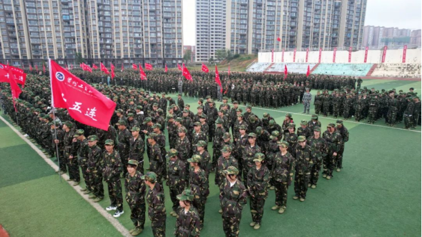 教官代表孔德训在发言中说,军事训练是各位同学融入大学生活的必经之路,军训教官将发扬部队优良传统,严格执行规章制度,并以身作则、言传身教,认真履行教官职责,帮助同学们掌握军事知识和技能,并培养军人作风和爱国情操。同时,希望全体参训同学端正思想态度,克服怕苦怕累的消极情绪,真正把本次军训当作人生旅程中的必修课,为无悔青春留下浓墨重彩的一笔二、坚决服从命令,坚决做到令行禁止、雷厉风行,严禁以各种借口逃避训练或消极训练,在军训过程中,严格遵守训练场纪律,自觉增强纪律观念。
