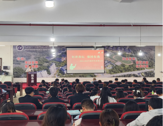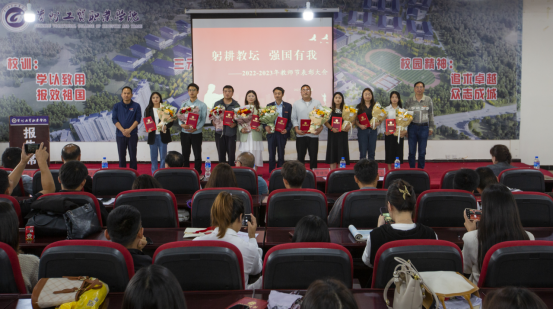 大会在庄严的国歌声中拉开序幕,围绕主题“躬耕教坛,强国有我”,对2022—2023学年度在学校教学科研工作、学生管理工作、教辅工作、后勤工作等方面涌现出来的54名先进个人进行了表彰,颁发荣誉证书及鲜花。