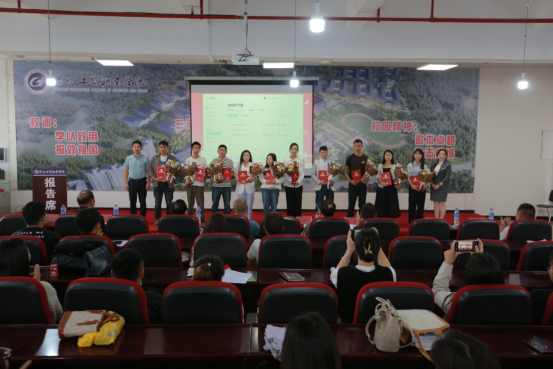 杨金钱、刘毅为荣获工贸技师学院“优秀班主任”“优秀教育工作者”“优秀教师”的教师颁奖。