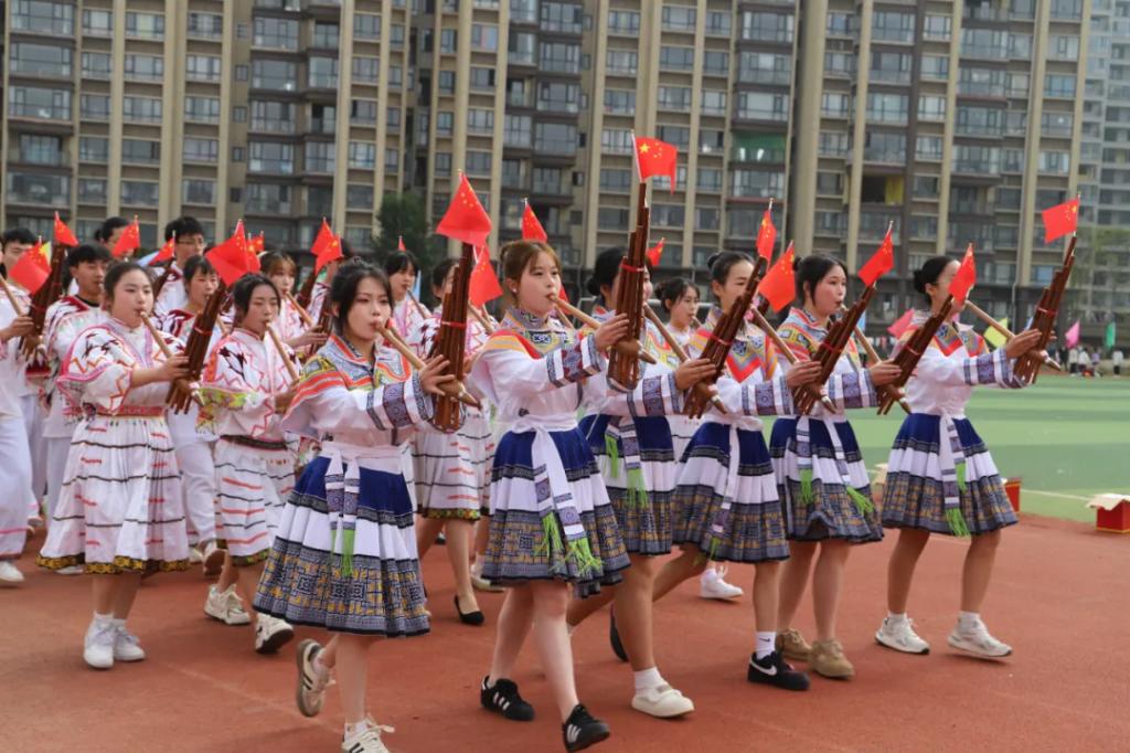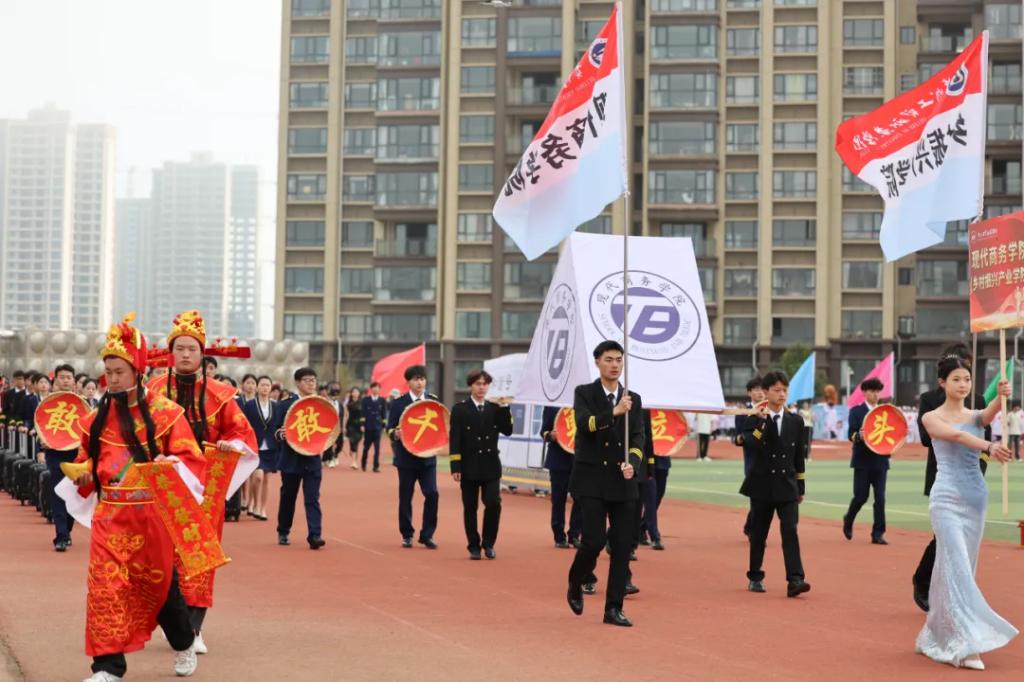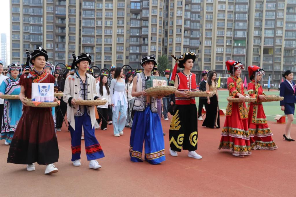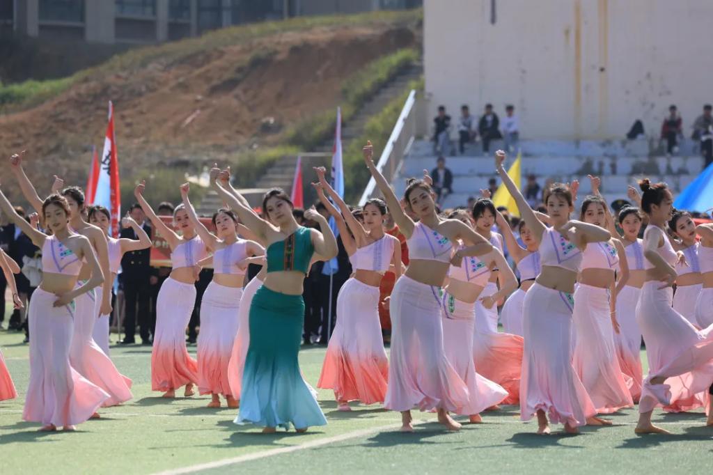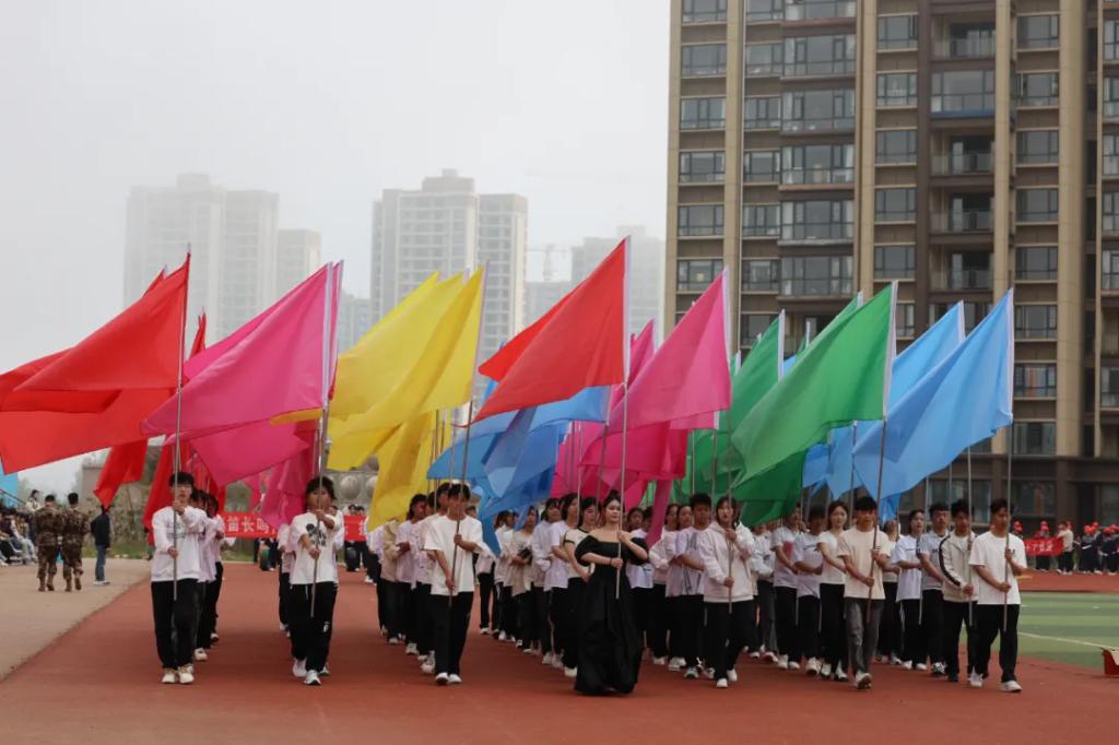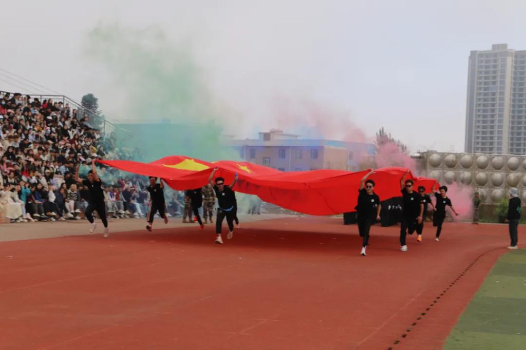 生而逢盛世,青年当有为。草海湖畔,书写着Ky开元集团师生再创辉煌的凌云壮志。5月23日,Ky开元集团第五届校园运动会开幕式在学校田径场正式拉开帷幕。校领导徐锋、李建萍、聂立新、李新发、勒系琳、曾隆槐、杨金钱,校属各单位负责人在主席台就坐,全体师生参加。校党委委员、副校长杨金钱主持开幕式。伴随着《运动员进行曲》激昂的旋律,Ky开元集团第五届运动会拉开序幕。国旗方阵和校旗方阵首先入场,紧接着彩旗方阵、裁判员方阵入场、智造工程学院(新能源产业学院)方阵、现代商务学院(乡村振兴产业学院)方阵、生态医药与康养学院方阵、国防教育与体育学院方阵、艺术学院方阵踏着轻快的步伐,以饱满的精神面貌入场。