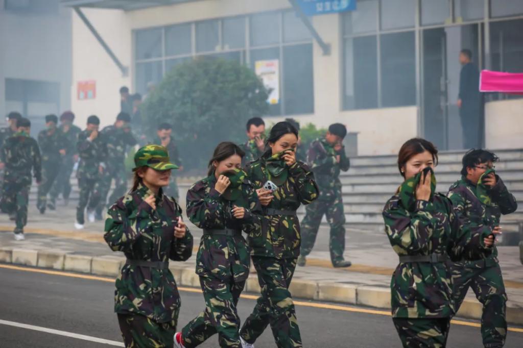 随着烟雾升起,全体新生迅速捂住口鼻,弯腰低姿,按照预定的疏散路线快速、有序地撤离至安全区域。在疏散过程中,各楼层负责引导的教官认真指挥,确保每位学生都能安全疏散,无一遗漏。整个疏散过程井然有序,做到了快速、安全、有序,充分体现师生们高效的应急反应能力和良好的纪律性。