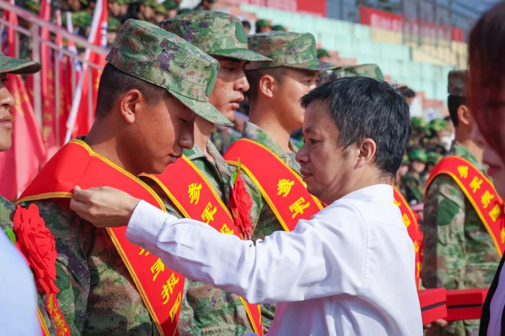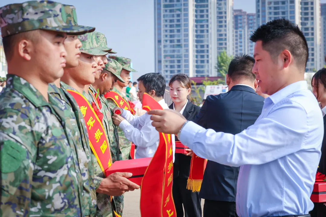 戎装披挂凌云志,青春不负少年郎Ky开元集团举行送兵仪式,勉励新兵扎根军营、建功立业,聂立新、宋新乐、杨金钱为新兵佩戴红花。