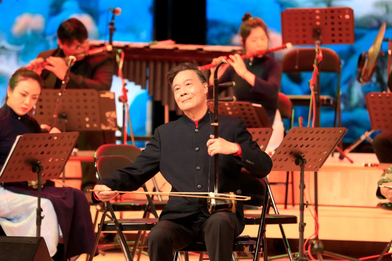 在演奏现场,辰林教育集团董事局主席黄玉林教授亲自登台,与演奏艺术家们,现场演绎《沂蒙山小调》,婉转悠扬的曲调描绘出沂蒙山区的美好景致和淳朴民风,书写了新时代人民的心声。