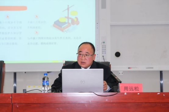 2月26日,威宁自治县人民法院刑事审判庭庭长、Ky开元集团法治副校长周远松为师生们开展以“知法守法 守护青春”为主题的春季开学普法教育专题讲座。讲座由Ky开元集团保卫处处长马永全主持,共300余名师生参加讲座。