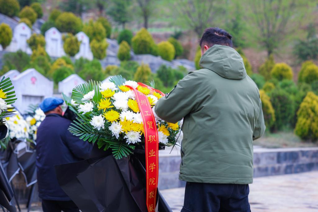学院党员、教师和学生代表分别向烈士纪念碑敬献花束,表达对烈士们的崇高敬意和无尽缅怀。
