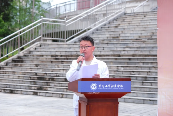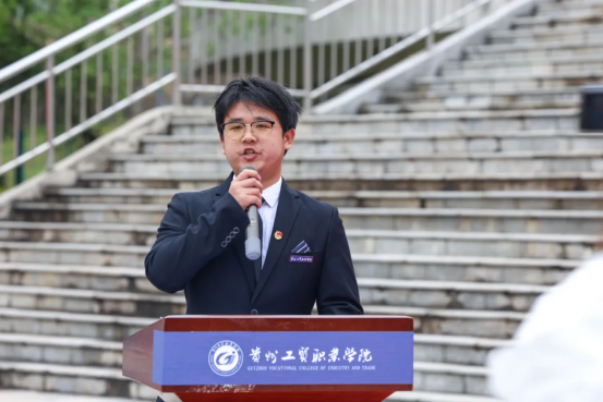 来自乡村振兴产业学院大数据与会计4班的陈熙作为学生代表发言。他在发言中表示,“一技在手,一生无忧”,这是职业教育的精神内核,更是职教青年面对未来竞争的底气。他说,曾经,“职业教育” 被贴上 “次选” 的标签。但当成为一名职教青年,深入了解后才发现,那些闪耀的榜样正是从职教校园走向广阔舞台:世界技能大赛汽车喷漆项目冠军蒋应成,用喷枪绘就国际赛场的中国色彩;航天高技能人才巩海超,从职校毕业生成长为攻克航天液压技术难题的专家……这些榜样成功的故事告诉我们:所谓“一技”,是深耕领域的专注力、解决问题的行动力,更是适应时代变化的创造力。