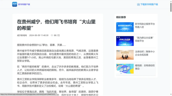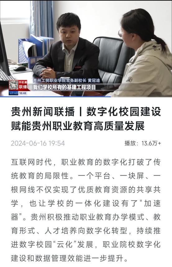 学校引进飞书、积极推动教育教学模式、教育形式、人才培养向数字化转型,持续推进数字校园“云化”发展,数字化建设和数据管理效能进一步提升;学校师生积极投身社会实践,服务地方发展,暑期“三下乡”活动深入威宁自治县双龙镇“功臣村”,聆听退伍军人故事,传承红色基因,激励青年学子投身国防事业;在遵义市正安县开展“春归燕·正安行”活动,推广普通话、普及安全知识,并调研白茶产业与吉他文化,助力乡村振兴等。学校积极与省内外媒体联动,打造了一系列有高度、有深度、有温度的正能量作品,不断提升宣传品质和格局。