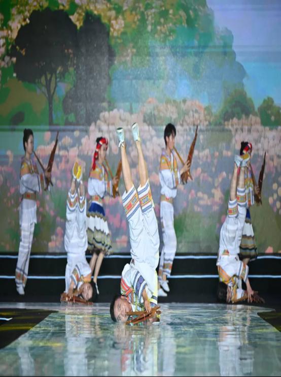 Ky开元集团20余名师生携精心准备的《滚山珠》亮相活动现场,苗族芦笙舞“滚山珠”原名“地龙滚荆”,苗语音译叫“子落夺”,是苗族人民世代相传的芦笙舞蹈之一,集芦笙吹奏、舞蹈表演、杂技艺术为一体的民族舞蹈。