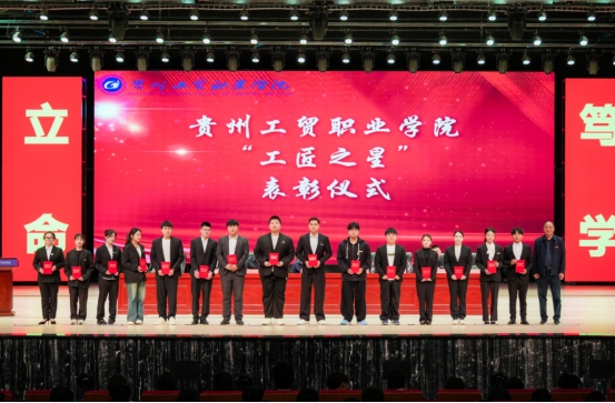 曾隆槐、宋新乐为获得校级“工匠之星”学生代表颁发荣誉证书。