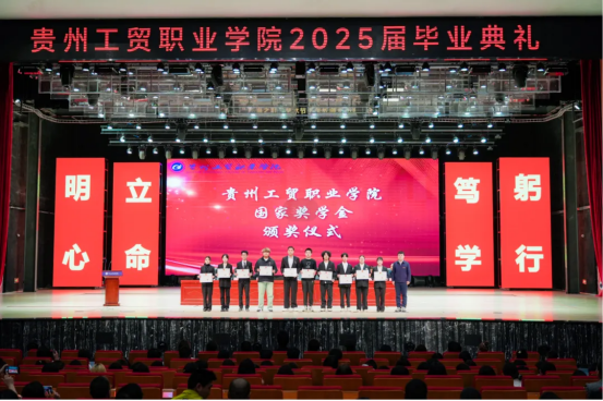 智造工程学院2023级计算机应用技术3班范幸冰作为国家奖学金代表发言。他代表学弟学妹,向2025届的毕业生们表达真挚的祝福与不舍。他在发言中表示,在学校这两年里,创建比赛团队,与同学们我们并肩作战、攻坚克难,成功斩获多个奖项。这些荣誉离不开学校的大力支持,离不开老师的指导和关怀,是工贸这片沃土,锤炼了“精益求精”的工匠精神,也逐渐明白“明心 立命 笃学 躬行”的精神。