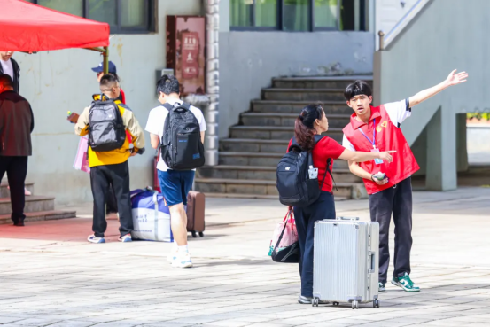 校园内,各部门通力协作,为新生提供一站式服务。保卫处加强巡逻,维护校园秩序与安全;宿舍管理中心快速办理入住手续,帮助学生安顿起居;学生志愿者积极引导、帮忙搬运,用热情和微笑让新生感受到家的温暖。