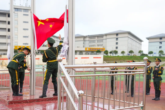 仪式在激昂的国歌声中拉开帷幕,全体师生肃立,注视国旗冉冉升起。