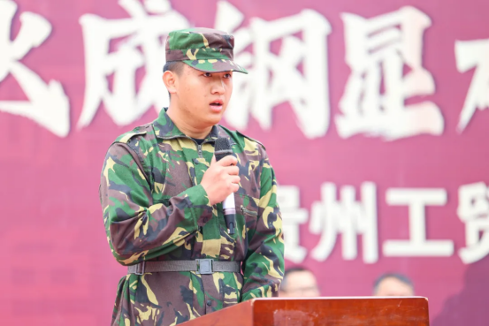智造工程学院(新能源产业学院)高冲作为新生代表发言,他动情地回顾军训期间的成长与收获:“军训不仅锤炼了我们的体魄,更重塑了我们的精神。它让我们深刻体会到:纪律是自由的翅膀,唯有自律,方能翱翔于更广阔的天空。”