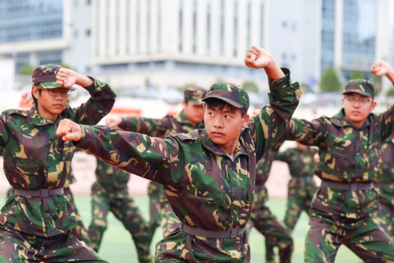“听党指挥、能打胜仗、作风优良!”军训成果展示正式开始。队列方队步伐铿锵、军容严整;军体拳表演刚劲有力、虎虎生风;捕俘刀(匕首操)动作精准、杀气凛然;擒敌拳方队配合默契、气势如虹;战术表演情节逼真、惊心动魄。一个个精彩的课目展示,赢得现场阵阵掌声,充分展现了2025级新生经过14天军事训练后昂扬的精神风貌。
