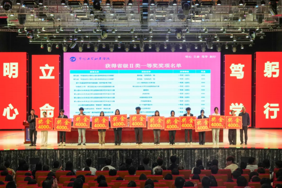 典礼上,学校对2024年在各类学科与技能竞赛中取得优异成绩的师生进行表彰,充分展现了学校“以赛促教、以赛促学、以赛促创”的育人成果。