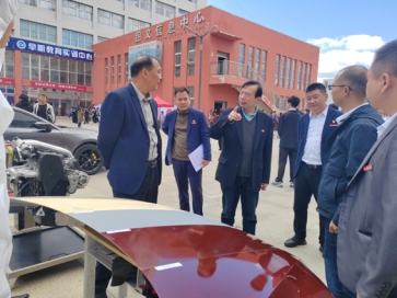 图为黄士安校长一行查看我院学子汽车涂装作品