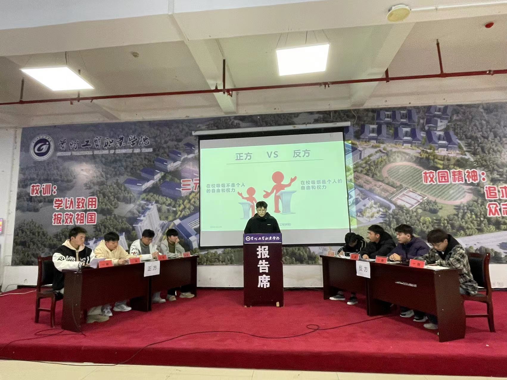 为加强戒烟戒酒知识科普宣传,提高广大师生对烟草、酒制品危害的认识、充分认识到吸烟喝酒对身体健康和公共环境的影响,减少吸烟带来的健康风险,11月23日晚,新能源产业学院(智造工程学院)在草海大讲堂开展“禁烟、禁酒”主题辩论赛复赛,本次比赛共12支队伍参赛。 智造工程学院团总支书记朱朝应,智造工程学院唐玉老师、倪琳老师、彭明义老师参加活动并担任评委,智造工程学院200余学生观看比赛。