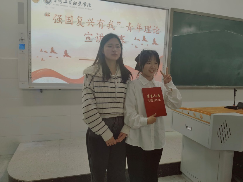 宣讲结束,评委们对参赛选手的表现进行总结点评,对同学们勇于表现自我、自信大方,全方位、多层次、多角度地展现出愿国家富强、民族复兴、人民幸福的情感流露,对祖国的热爱、对理想的追求融入字里行间的表现给予了高度的评价。最后,学院为获奖的参赛选手颁奖,并合影留念。