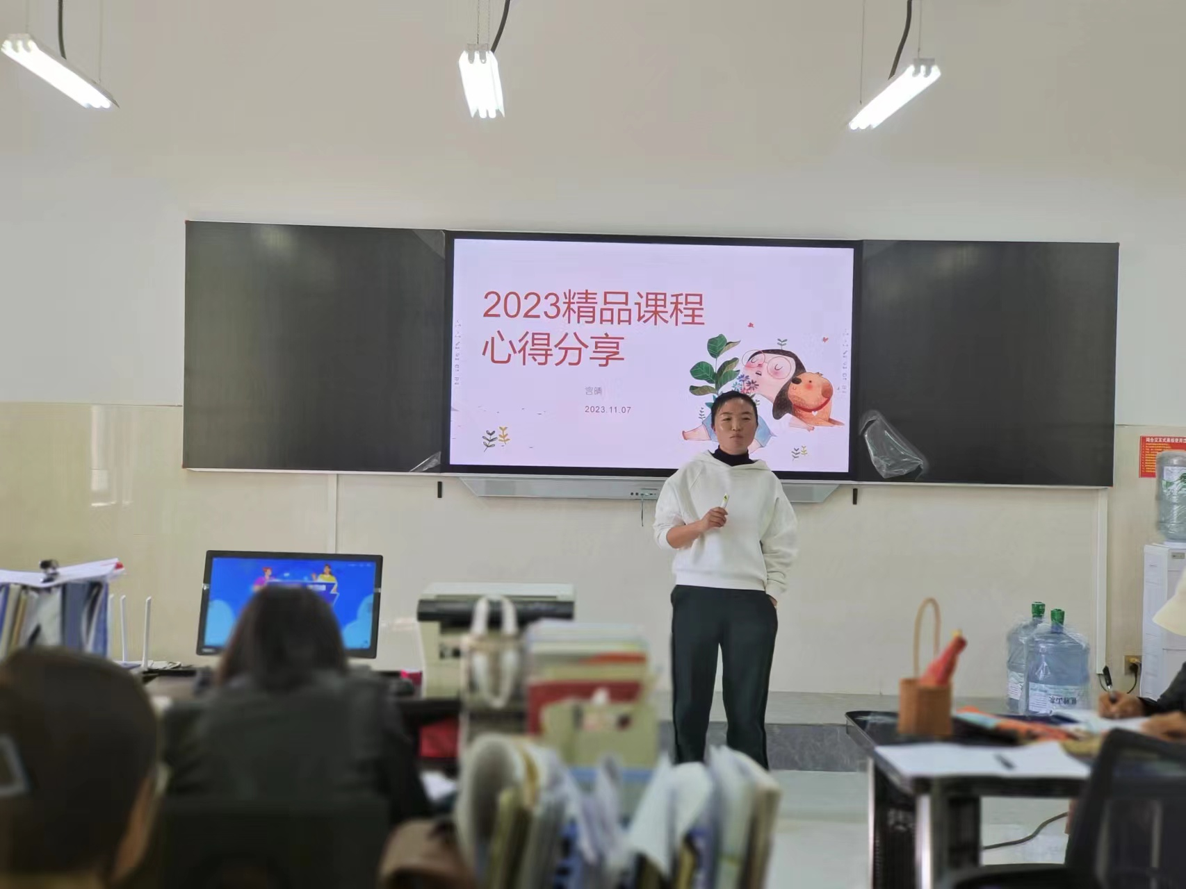 教研是教学的双翼,教研活动能够让教师的翅膀奋力飞翔,让我们的教学和谐而充满生机。为了促进每一个教师研究自己的教学策略和行为,使教师的成长、教师的教学方式有新的转变与方向。11月21日下午,艺术学院广告教研组在2教310开展了以“2023省精品课程比赛心得分享”为主题的教研活动,教研活动由广告教研组全体成员参加。专职教师宫晴分享讲解。此次教研活动针对本年度贵州省精品课程比赛的相关内容、比赛注意事项、比赛常规方式、课题定位等进行分享,并结合精品课程案例赏析进行分享与讨论。