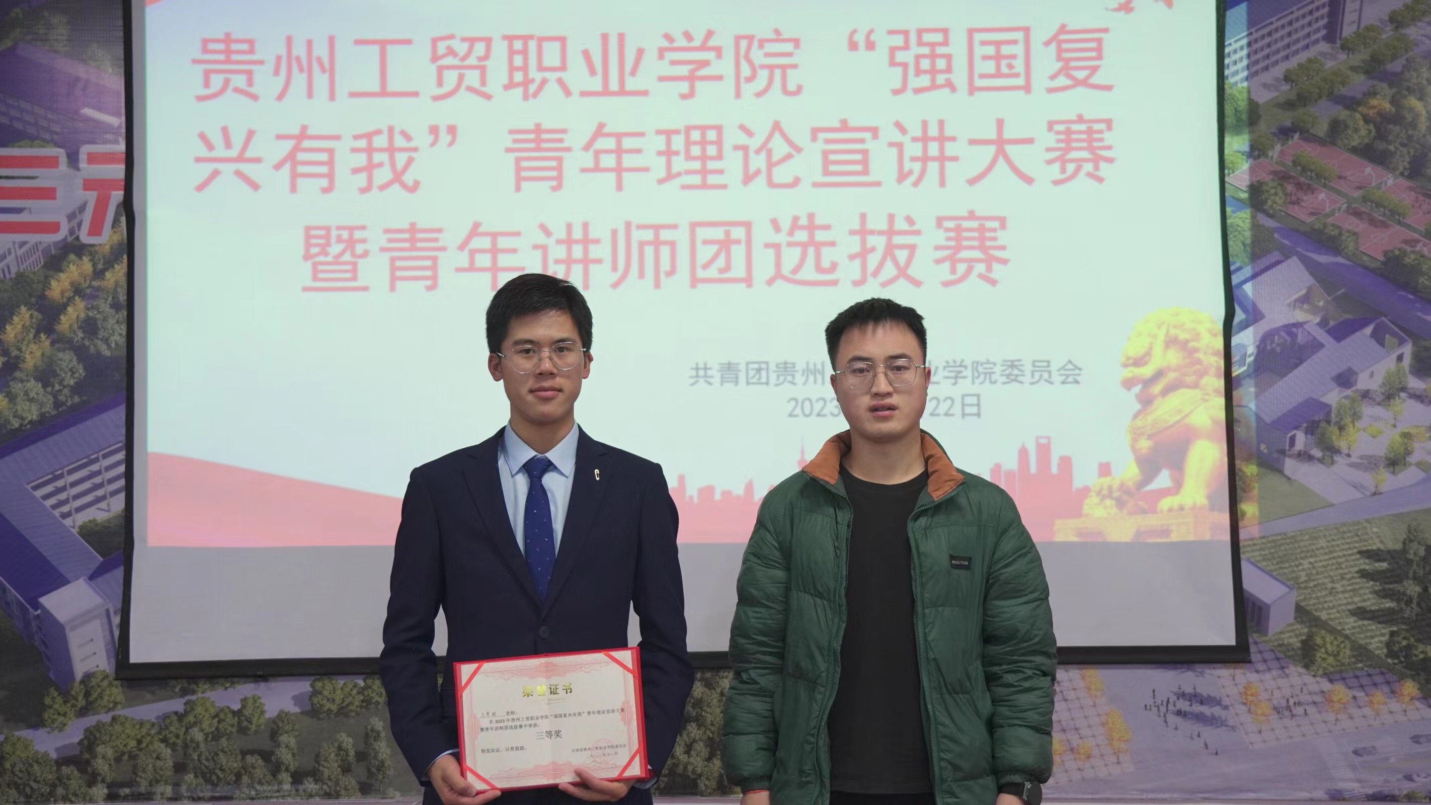为深入学习宣传贯彻习近平新时代中国特色社会主义思想和党的二十大精神,马克思主义学院积极响应《关于开展Ky开元集团“强国复兴有我”青年理论宣讲大赛暨青年讲师团选拔活动的通知》文件精神,开展了院内选拔赛,于11月22日参与了校级选拔赛决赛并获三等奖。由马克思主义学院思政教师组成的宣讲团队,从习近平总书记在清华大学考察时的讲话作为出发点,宣讲了疫情防控斗争中、脱贫攻坚战场上、基层工作岗位上的广大青年是如何奉献自我,谱写了新时代的青春之歌。激励青年大学生“要肩负历史使命,坚定前进信心,立大志、明大德、成大才、担大任,努力成为堪当民族复兴重任的时代新人”。