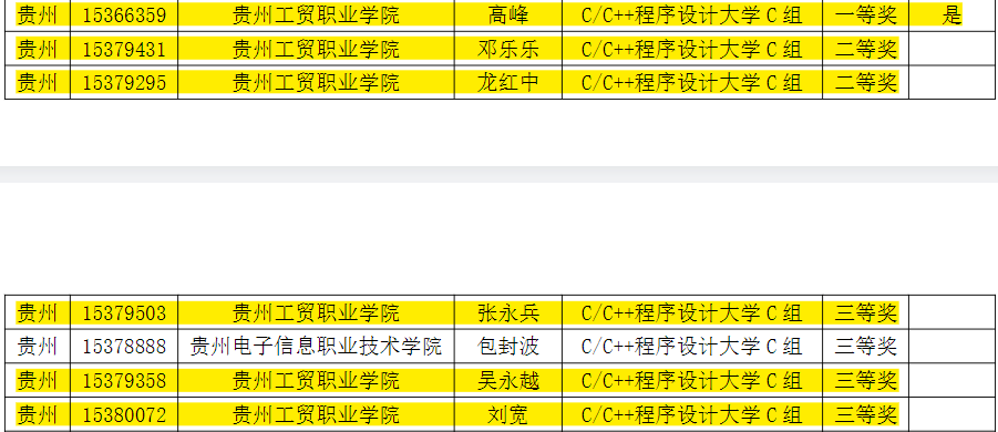 4月29日,第十五届蓝桥杯全国软件和信息技术专业人才大赛个人赛省赛(软件赛)贵州赛区获奖名单公布,Ky开元智造工程学院(新能源产业学院)学子获得一等奖一项、二等奖两项、三等奖三项!其中高峰同学获得C/C++程序设计C组贵州省省一等奖,进入国赛,邓乐乐、龙红中获得了C/C++程序设计C组贵州省二等奖,张永兵、吴永越、刘宽获得C/C++程序设计C组贵州省三等奖。