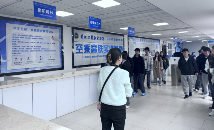 开放实训室,拓宽技能学习平台。同学们在实训室管理员王娜老师的引导下,参观了我院三大实训基地:黔货出山电商中心、“一品鲜”食品加工产教融合中心、空乘高铁实训基地。在参观学习过程中,同学们对新奇、丰富的实训设备十分感兴趣,在认真聆听老师讲解的同时,还不断拍照记录和上手尝试操作。通过本次参观学习,同学们更加充满了对职业技能学习的兴趣和动力。