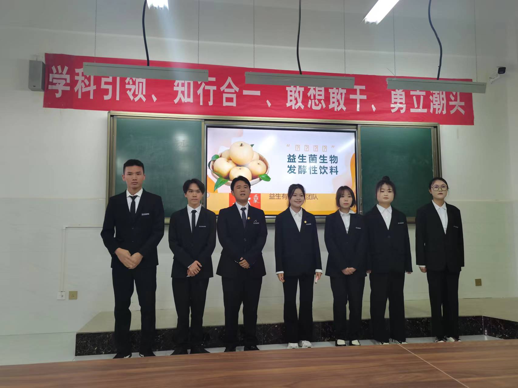 选拔赛上,各个小组依次上台,参赛选手们从产品介绍、项目概述,发展规划等方面阐述创新点、可行性和未来前景等方面,通过PPT、视频、实物展示等多媒体形式向评委老师展示项目成果。赛场上各项目团队紧扣乡村振兴、文化传承、地方经济发展,探索项目,创新提出项目方案,充分展现了我院大学生的高度社会责任感和爱国情怀。助推乡村经济发展、促进非遗文化传承关心人民健康的项目精彩纷呈,同学们的奇思妙想在此刻汇聚、碰撞,迸发出璀璨的智慧花火,充分展现了当代大学生对新时代创新精神的独特理解。