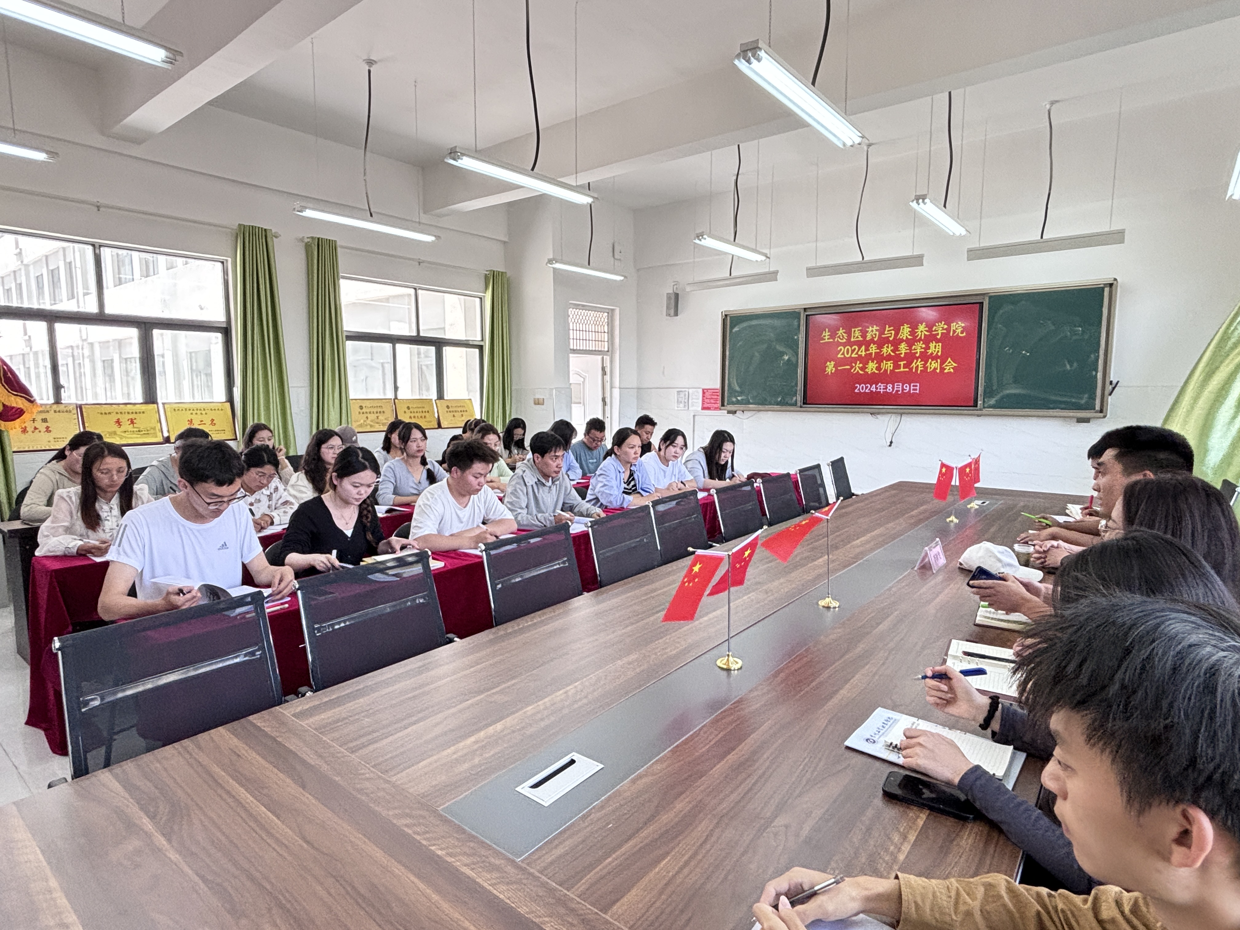 8月9日在生态医药与康养学院会议室召开2024年秋季学期第一次教师工作例会,参会人员主要有校党委委员、副校长李新发,生态医药与康养学院全体教师。本次会议由王方对主持。