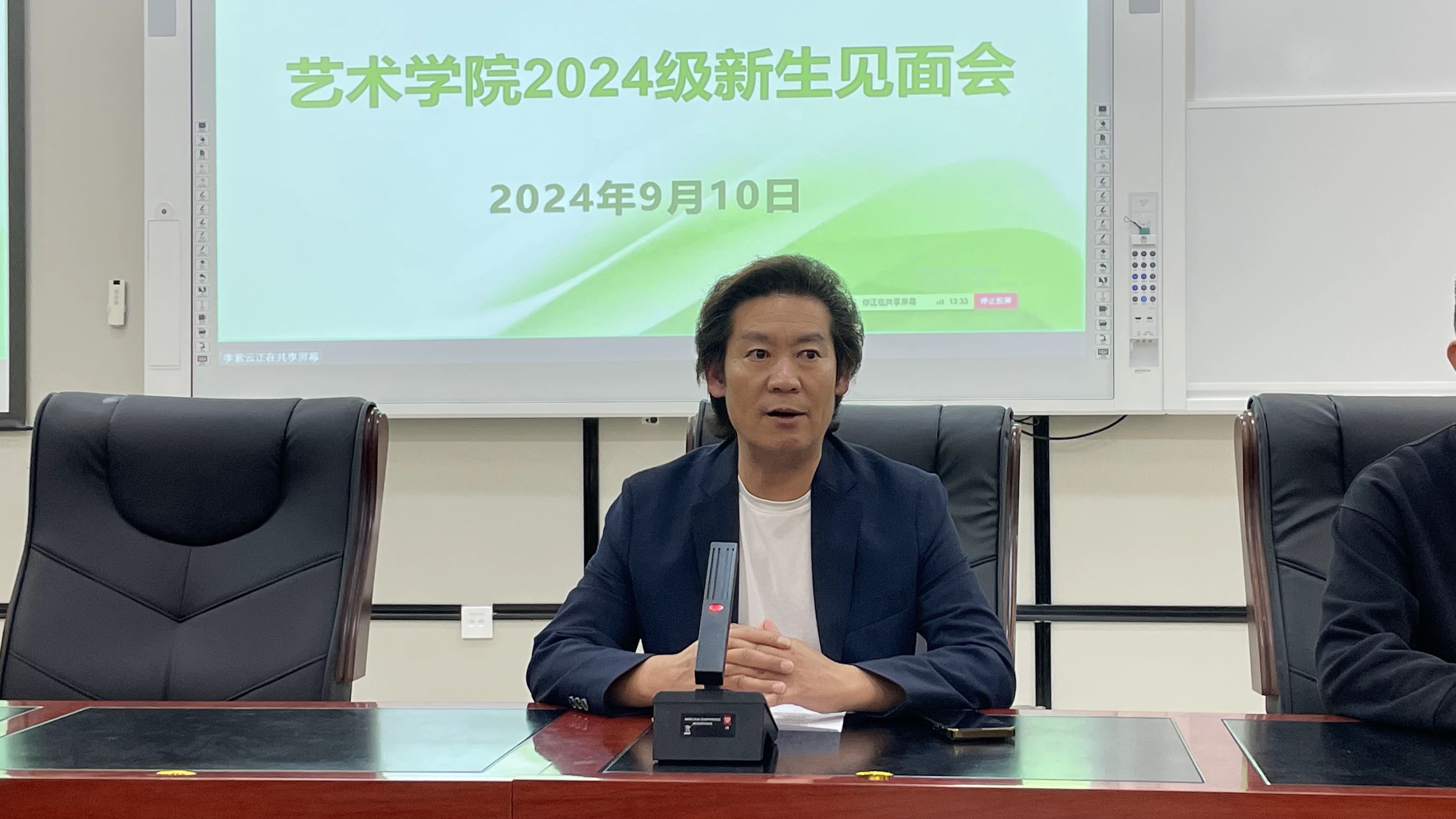 9月10日下午,艺术学院在图书馆负一楼报告厅召开2024级新生见面会,标志着2024级新生正式开启了他们在艺术学院的学习生活之旅。此次见面会旨在帮助新生更好地了解学院情况,适应大学生活,同时增强新生的归属感和责任感。学院领导、各教研主任、辅导员、专职教师及全体2024级新生参加。见面会由艺术学院院长周正军主持。