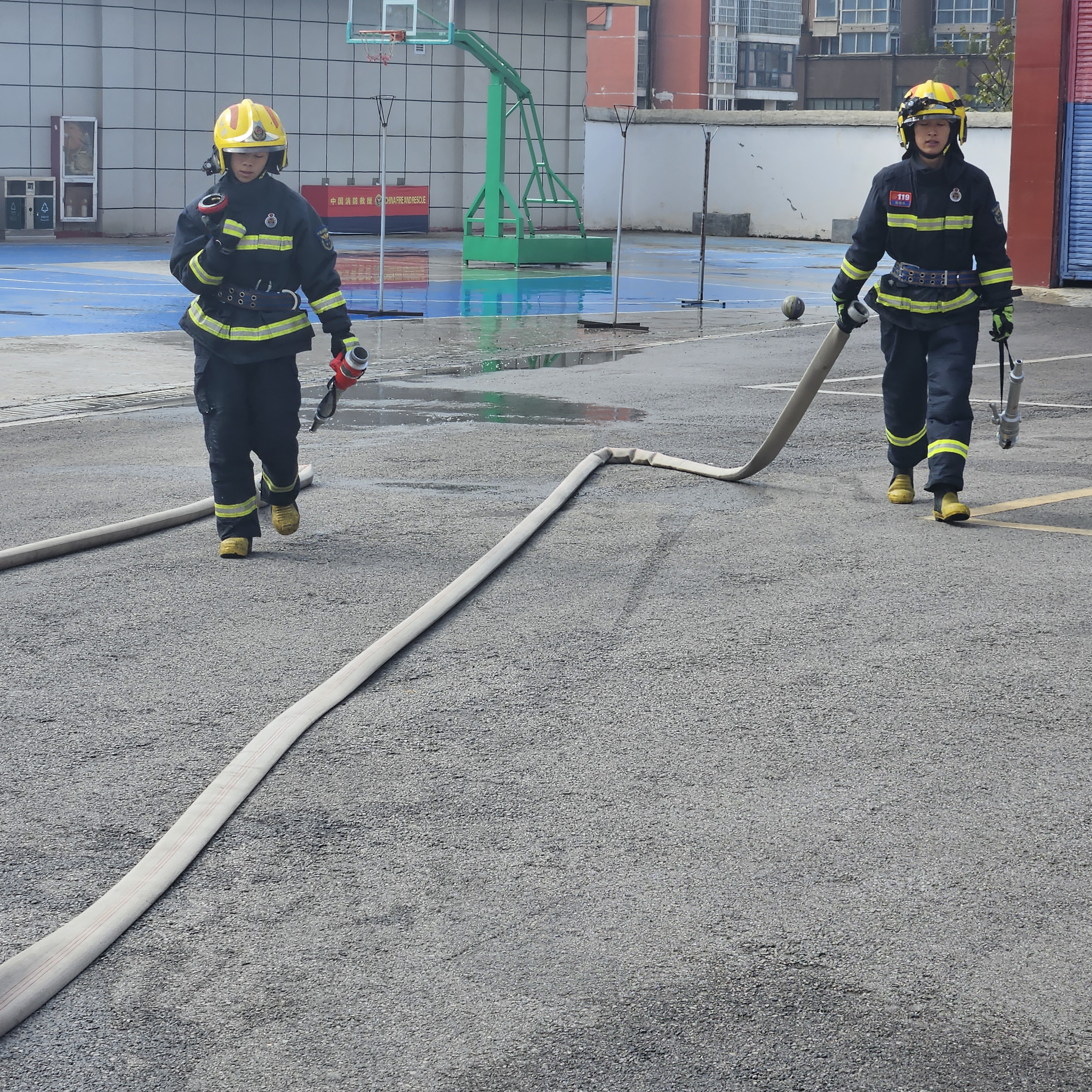 随后,在消防员的指导下,预征班学生们亲身体验了消防战斗服的穿戴及高压灭火水枪的使用。消防战斗服重达数十斤,加上头盔、靴子等装备,穿戴起来并不轻松。学生们在消防员的指导下,笨拙地穿上战斗服,感受着消防员们在执行任务时所承受的重量与压力。在使用高压水枪时,一位学员感慨道:“仅仅是穿上这套装备就已经感觉行动不便了,难以想象消防员们穿着它还要进行高强度的灭火救援工作,他们真的太不容易了。” 通过亲身体验,他们对消防员们的敬佩之情油然而生,也更加明白了这身 “火焰蓝” 制服所承载的责任与使命。