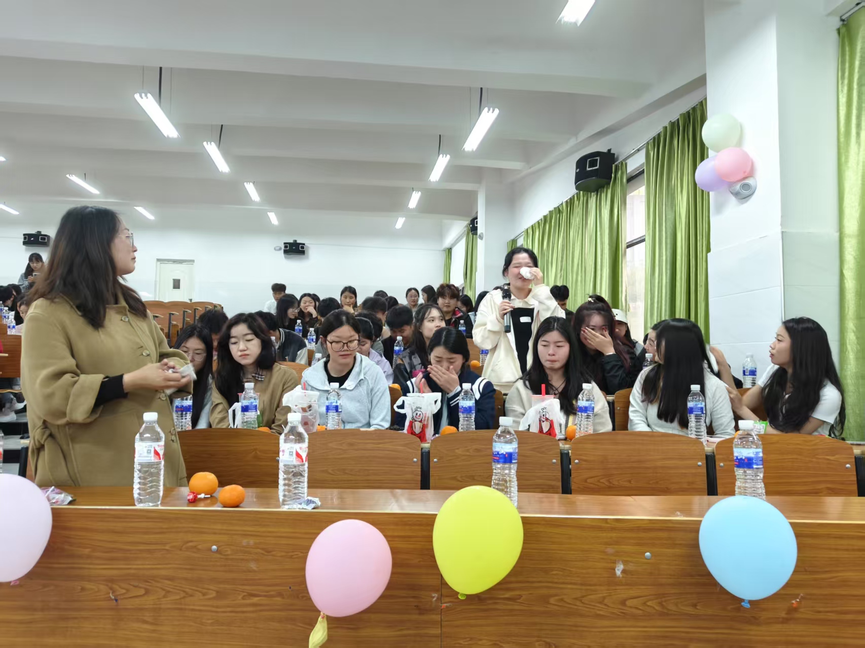 周鑫通过四个问题在自由问答环节与同学们进行深入交流,“实习期间最大的感悟是什么”“如果大学满分100,你会给自己打多少分?”“未来有什么规划和期盼?”“最想对辅导员说什么?”王丽娜、黄大宁等数名同学踊跃发言。他们分享着实习实践中的酸甜苦辣,那些收获与感悟,是成长的勋章;对自己大学生活进行客观评价,有自豪也有反思;畅谈未来规划与期盼,眼中闪烁着对未来的憧憬;还向辅导员送上了最真诚的祝福,字里行间满是感激。他们的故事,生动展现了生态医药学子扎实的专业素养和昂扬的奋斗精神。现场气氛温馨而热烈,同学们沉浸在回忆与展望中,彼此见证着成长,也深深眷恋着这即将结束的大学生活,这份情谊与回忆,将成为他们人生中宝贵的财富。