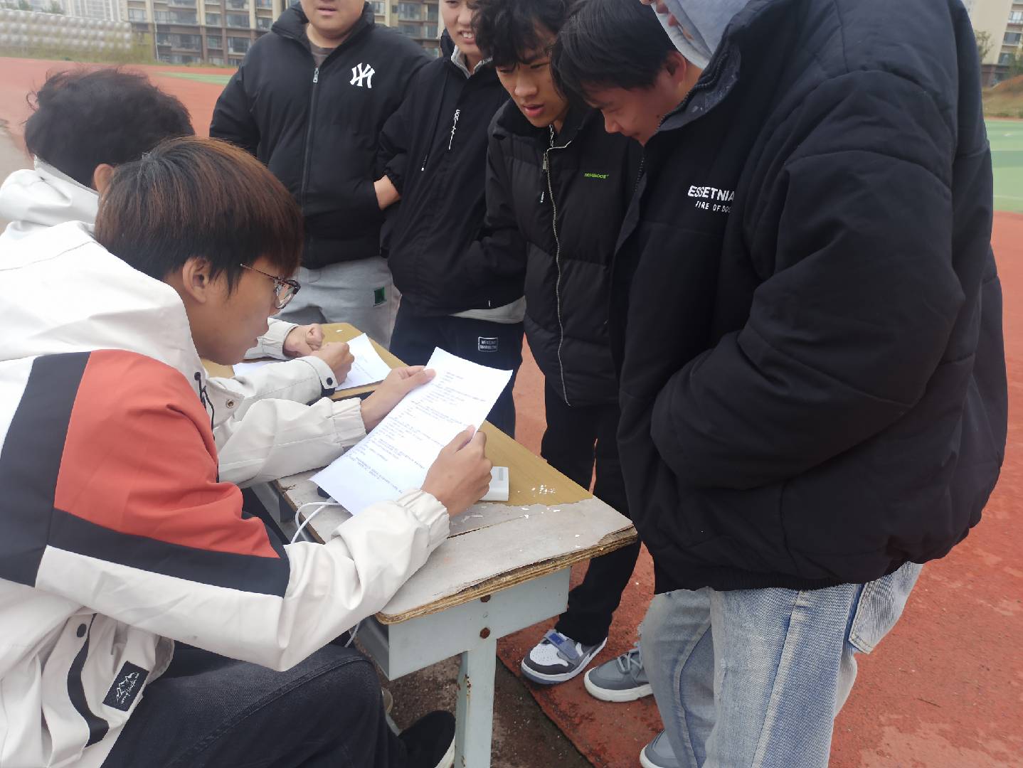 赛场上,参赛学子们组队驰骋红色跑道,协力突破层层障碍;知识竞答摊位前,他们又迅速沉浸于头脑风暴,或凝神思索或热烈讨论,在智力与体力的无缝切换中尽显青春朝气与团队力量。整场活动既充满竞技的紧张感,又洋溢着思辨的浓厚氛围。