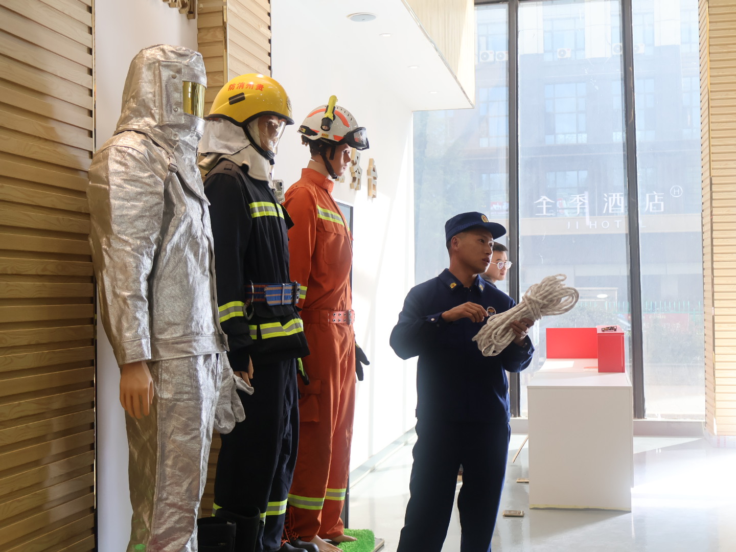 在消防科普教育馆内,同学们沉侵式体验了丰富的图文展板、仿真模拟场景和互动教学设备,系统地学习了火灾预防核心知识。结合触目惊心的校园火灾真实案例,讲解员聚焦宿舍违规用电、实验室易燃易爆品操作不当等的常见风险,进行针对性警示教育。随后,同学们走进模拟烟热逃生通道,在高度仿真的昏暗烟雾环境中,运用所学要领有序撤离,将理论知识转化为肌肉记忆,有效锤炼了应急避险与自救互救的实战能力。