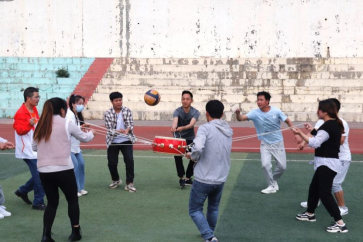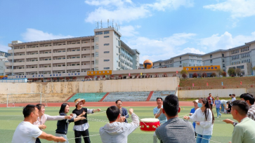 抵达足球场后,首先由智造工程分院办公室主任孔蝶进行了素质拓展活动动员讲话。她指出,教师素质拓展活动的开展是推进教师强身健体、改善教师工作方式、培养教师团队合作意识的好途径,分院所有教职工在接下来的活动过程中,要迎难而上、团结拼搏,展现出智造工程分院教职工的英姿风采和精神风貌。