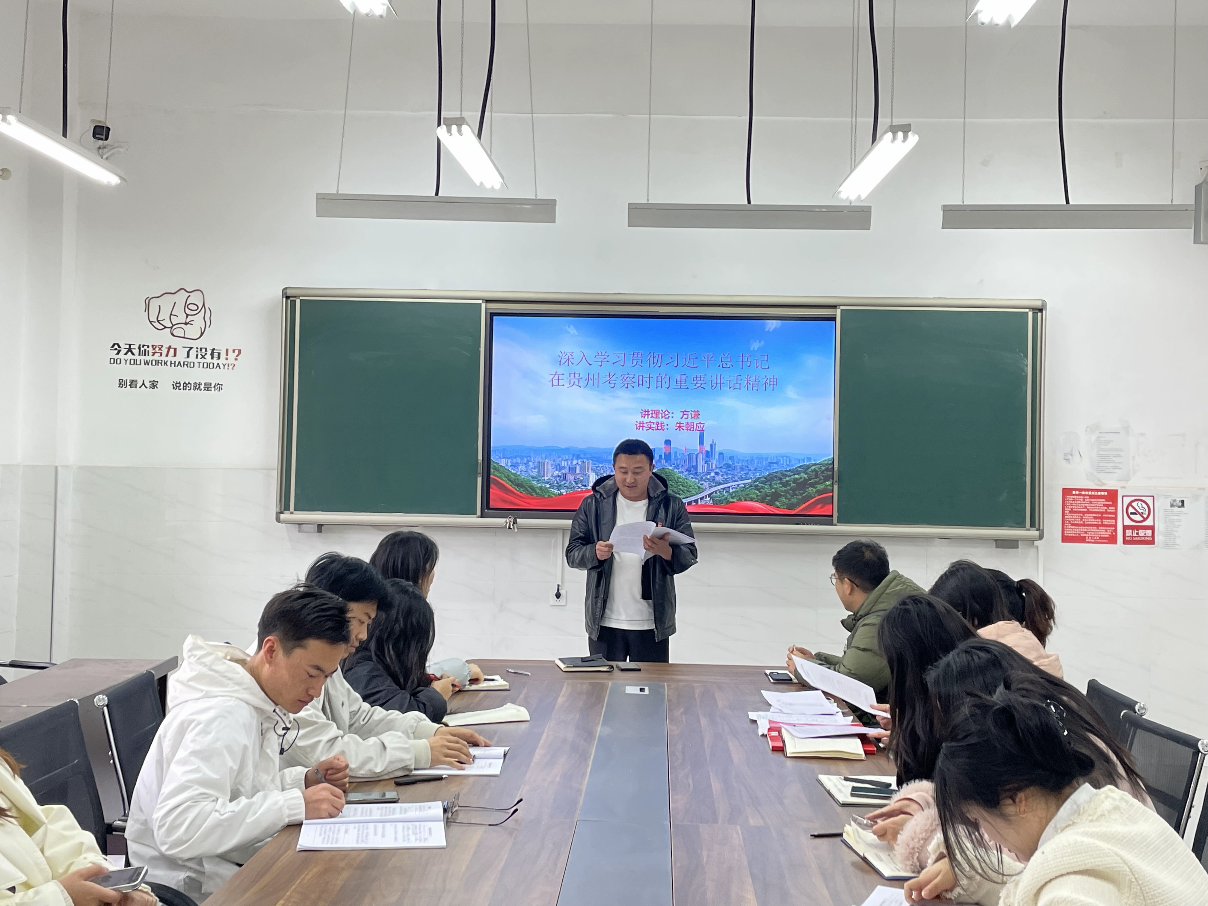 4月24日,智造工程学院党支部开展“理论宣传二人讲”活动。通过“一人讲理论,一人讲实践”的方式,深入、系统地讲解习近平总书记在贵州考察时的重要讲话精神的实质内涵及具体落实路径。