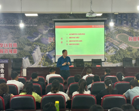 为了进一步加强辅导员队伍建设,全面落实提升大学生思想政治教育工作,提高学生管理工作质量和业务水平。8月16日,学工处在综合楼二楼学术报告厅开展新时代高校辅导员职业素质提升专题讲座。校党委委员、副校长宋新乐、全体团学工作人员以及全体辅导员参加本次专题讲座。本次讲座邀请江西应用科技学院卞秀运教授主讲。