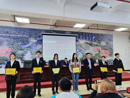 校党委委员、副校长祁飞向获得“五四红旗团总支”的代表颁发奖牌