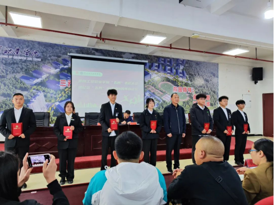 校党委委员、副校长宋新乐向获得“五四红旗团支部”的代表颁发奖牌