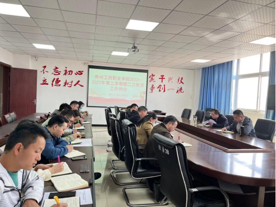 2022-2023学年度第二次教学工作例会于2023年3月20日,在综合楼三楼会议室由教务处处长主持召开,参会人员主要有李建萍副校长、教务处全体人员、二级教学单位负责人及教务科长。