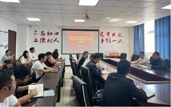 2022—2023学年度第二学期第三次教学工作例会于2023年5月5日,在三楼会议室由教务处长主持召开,参会人员主要有李建萍副校长、教务处全体人员、二级教学单位负责人及教务科长。