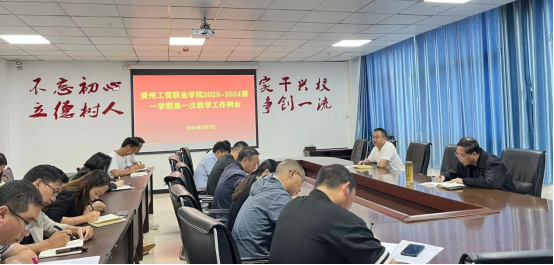 李旭阳对本学期重点工作及8月份工作计划进行安排部署。二级教学部门对本学期完成的教学准备工作以及本学期部门工作计划进行汇报。