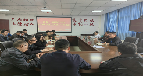 会上,招生就业处负责人罗孝龙传达全省就业工作培训会议精神。全省就业工作培训会指出,学校要高度重视就业工作,要成立就业工作领导小组,要循序渐进推进毕业生就业工作;一定要保质保量完成双八目标。罗孝龙表示,就业工作一定要积极“走出去”、主动“请进来”,各二级学院要配合招生就业处,以学科专业为单位,实现访企拓岗和引企入校的校园招聘。接下来,招生就业处将统筹开展以各二级学院为主体的访企拓岗活动,针对不同专业开展“小而优专而精”的专场招聘不低于20场,大型双选会一场。