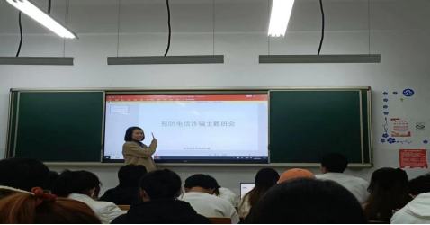 同时辅导员向同学们讲解了“什么是电信诈骗”、“如何防范电信网络诈骗”等问题。同时,辅导员结合实际案例,重点就常见的代办电话卡、银行卡,网络兼职刷单,网络贷款、冒充公检法等多种诈骗方式向学生逐一说明,并且传授了“识诈、反诈、防诈”技能,提醒全体同学要以案为鉴,谨防上当受骗。