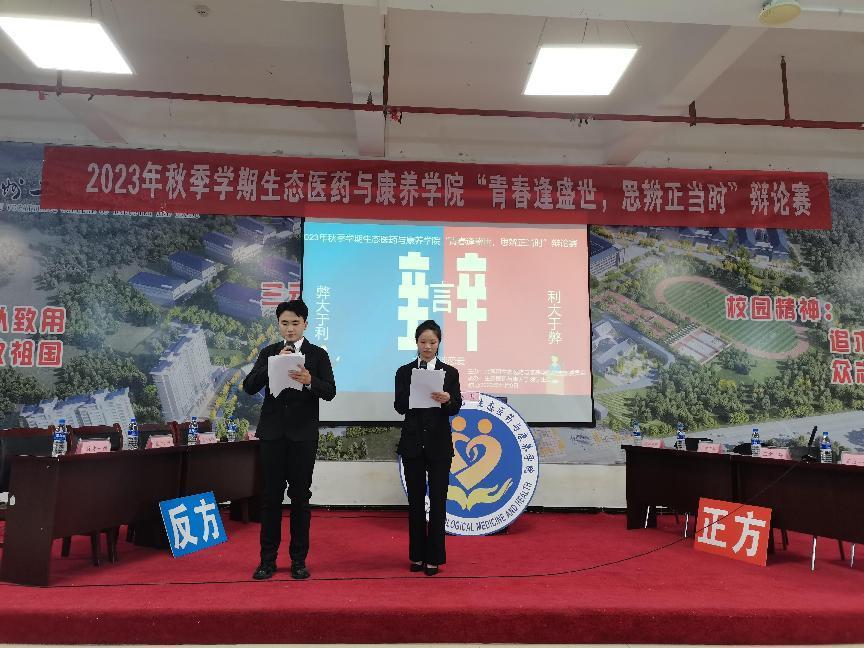 为丰富学生的课余生活,促进学院的学风建设,锻炼同学们的应变表达能力,在全院范围内形成一种勤于思考、敢于思辨、善于思辨的良好氛围,增强学生对辩论知识的认知,积极主动参与到学习中来,引导同学们的全面发展,我院11月9日下午在学术报告厅开展了“青春逢盛世·思辨正当时”辩论赛。