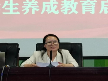 杨一梅分析了人的行为习惯、性格、命运之间的逻辑关系,并提出大学生要养成良好的道德修养,养成良好行为习惯,让文明落实在行动上,内化于心,外化于行,从我做起,从身边小事做起,才能在激烈的社会竞争中立于不败之地。对养成教育的践行提出了此时、此地、此身三要求,呼吁师生用实际行动践行学校的发展思路,齐心协力共创美好未来。