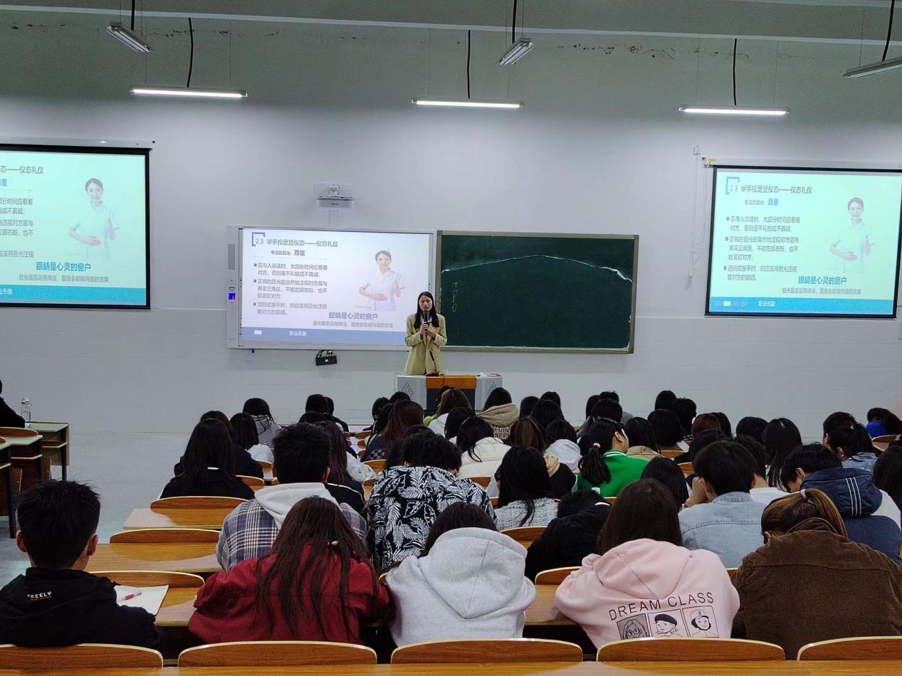 人无礼则不生,事无礼则不成,国无礼则不宁。为培养学生彬彬有礼,温文尔雅的良好行为习惯,传承和弘扬中华优秀文明礼仪,做有修养、有内涵、有本领的新时代青年。乡村振兴产业学院(现代商务学院)11月5日及7日晚于三教南区二阶举行第四期大学生素质养成教育系列讲座活动,本次讲座以“彬彬有礼,温文尔雅”为主题,由袁优老师和黄瑶老师主讲,23级全体班干部及电子商务、金融服务与管理、空中乘务专业全体同学参加本次讲座。