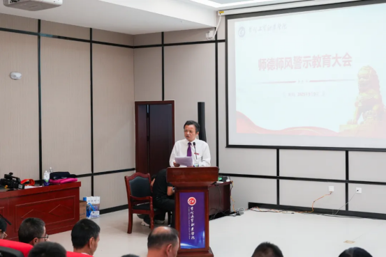 聂立新就师德师风建设作警示教育讲话。他结合当前教育系统党风廉政建设的总体要求,强调师德是教师的第一标准,是一切育人工作的基础。他指出,教师要坚定理想信念、恪守职业操守,在课堂教学、学生指导、科研合作等各方面严守底线、不越红线。学校将持续完善师德监督机制,开展常态化警示教育,严肃查处师德失范行为,努力营造清正教风、廉洁校园的良好生态。